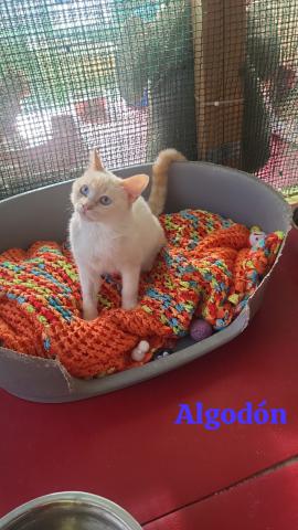 ALGODÓN ES UN PRECIOSO GATITO, NOBLE,BUENO Y CARIÑOSO.LE GUSTA ESTAR EN BRAZOS Y ESTA TODO EL DÍA RONRONEANDO, EL REFUGIO NO ES UN HOGAR PARA EL , LE AYUDAS?