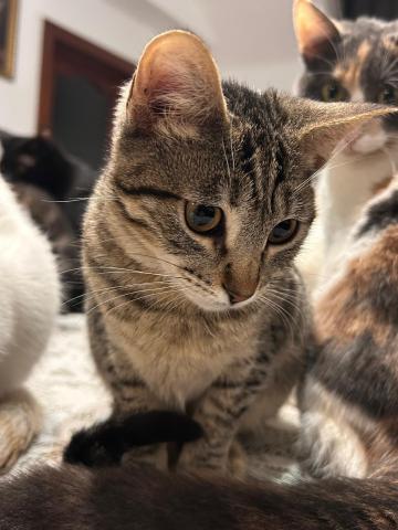 CHISPITA ES UN GATITO MUY PEQUEÑO Y CARIÑOSO. FUE ENCONTRADO EN UNA DE NUESTRAS CALLES DE RUTE, ERA MUY PEQUEÑO Y ESTAB SOLITO.CHISPITA BUSCA UNA BUENA FAMILIA QUE LO QUIERA PARA SIEMPRE, LE AYUDAS?