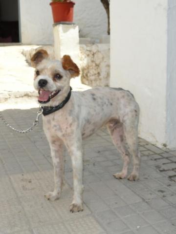 Historia. Hola! Me llamo Pepo y me han abandonado. Dice el veterinario que tengo un añito y peso 6'5 kilitos. Llevo todo el día desorientado buscando a mi dueño pero no aparece por ningún lugar. He ido a un parque, he cruzado una calle con muchos coches y casi me atropellan. Me he sentado muy cansadito delante del supermercado Mercadona y allí una chica me ha llamado. Yo tenía mucho miedo pero me ha dado comida y me he tranquilizado. Ella me ha subido a su coche y ahora estoy tranquilito en su casa junto con otros perritos más. ¿Te gustaría adoptarme? Te haré muyyyyy feliz.