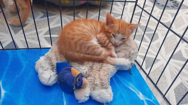 Estos preciosos gatitos estaban abandonados en una caja junto a un contenedor. Una vecina los rescató y nos avisó.