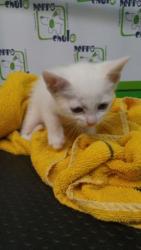 Blanquito es un gatito precioso que apareció en las puertas de un comercio de Rute. Estaba aterrado y sus alaridos llamaron la atención de los viandantes. Fue rescatado y le dieron un buen baño. Lo que era un gato gris y sucio, terminó siendo este pequeño ángel que afortunadamente encontró muy rápido un hogar. Sólo fueron horas las que pasó en la protectora.