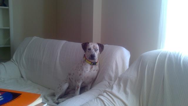 Su historia: Azucena fue encontrada en un parque que hay en Benamejí. Una chica se dirigía allí a leer cuando apareció la perra como de la nada y se acercó a ella. Conforme seguía andando, Azucena la seguía y durante la hora larga que estuvo sentada, la perrita estuvo siempre en torno al banco donde se encontraba. Pensó que no tenía dueño y no podía dejarla allí sola, así que llamó a su marido y se lo comentó, llamó a su casero y finalmente decidió llevarla al veterinario. Azucena la siguió todo el rato tanto a casa como al veterinario. Éste le comentó que unos días atrás la habían encontrado en la puerta de la Guardia Civil y posteriormente se la llevaron a él. Ya había comprobado que no tenía chip y él mismo la desparasitó. Entonces decidió acogerla y sacarla de la calle, hasta que encontrase una familia definitiva.