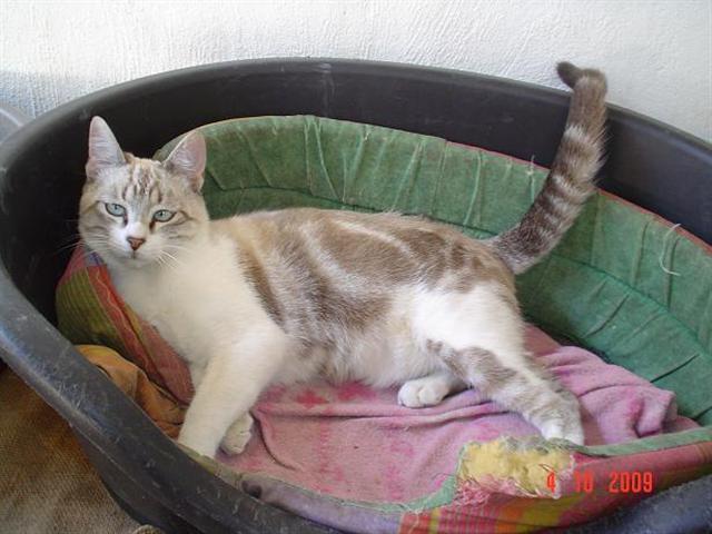 Rufino se ha quedado solito. Su dueña era muy mayor y la han internado sus hijos en una residencia de ancianos. Rufino sólo quiere compañía y que lo acaricien. Es un gato muy noble, juguetón y no se asusta de los perros. Tengo dos cachorrillos en casa de acogida y juega con ellos como si fueran gatos. Uno de los cachorros, Dartacán, hasta se sube encima de él jugando. Necesita alguien que lo mime y acaricie. Es mucho más guapo al natural que en foto. ¡Adóptalo, no te arrepentirás!. Te hará muy feliz.