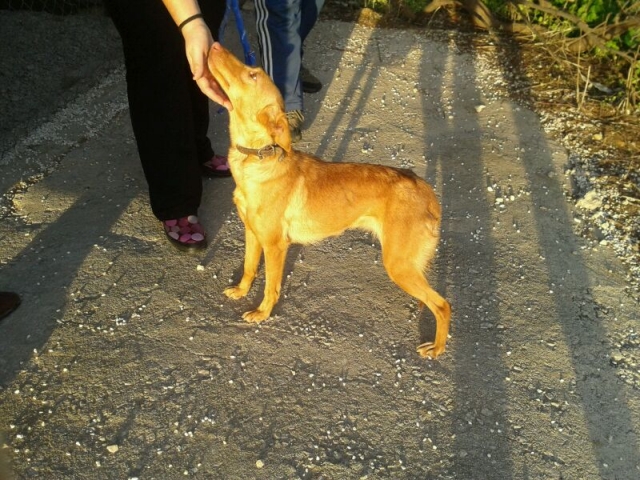 Aída es una podenquita de aproximadamente dos años de edad, de tamaño medianito y de carácter bueno y noble. Su triste mirada nos dice que no ha conocido amor alguno ni cariño. Habrá vivido en una jaula a la espera de que su dueño la sacara de vez en cuando y ya se habrá cansado de ella. Aída estaba sola, asustada y cansada de dar vueltas sin saber a dónde ir y una compañera la recogió rendida en la calle. Qué más podemos decir de su ingrata vida. Ojalá podamos escribir un mejor destino para ella.